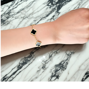 The Black Vancleef Bracelet channels minimalist elegance through its clean, gleaming silhouette. Its refined aesthetic evokes timeless grace, offering a subtle yet striking complement to both casual attire and sophisticated ensembles.