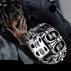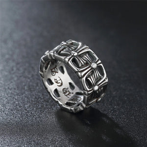 The Graveyard Chrome Band reimagines classic refinement through a bold chromatic lens. Its design features a sleek chrome finish, with an intricate alignment that wraps the band—a fusion of timeless elegance and modern edge that commands attention.
