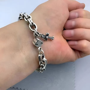 The Chrome Gamblers Bracelet embodies a fusion of bold aesthetics and timeless design. Its sleek chrome finish and minimalist silhouette make it a versatile accessory, seamlessly complementing both casual and refined ensembles. Crafted for those who appreciate understated elegance with a touch of edge.