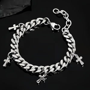 The Fiery Charm Bracelet showcases a captivating display of gothic-inspired charms, that add a touch of dark elegance to any outfit. Designed for those who embrace the macabre; this bracelet combines intricate detail with versatile style, all with a lobster clasp latch to ensure the perfect universal fit.