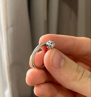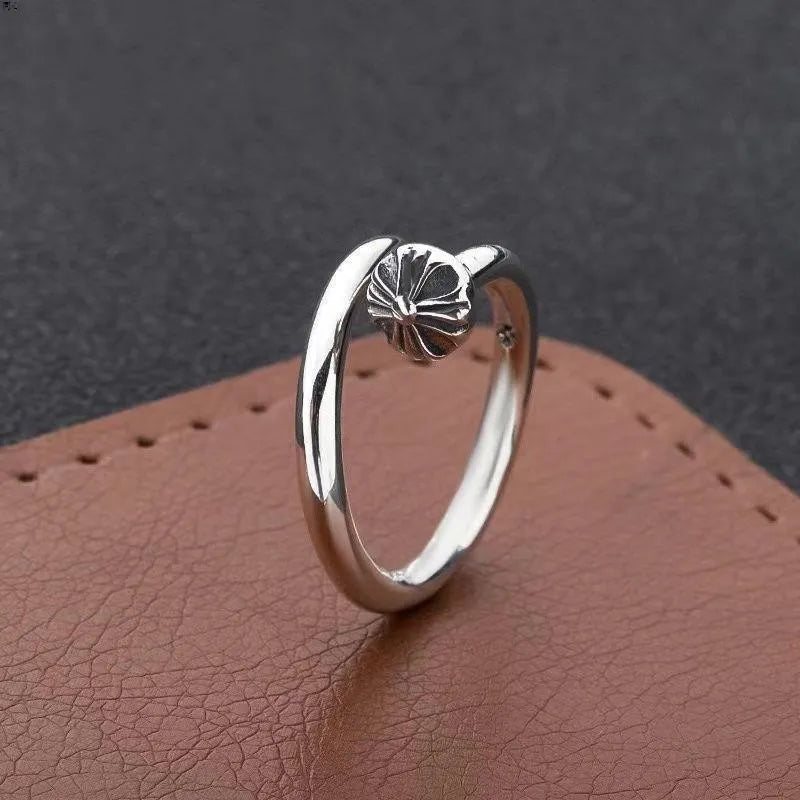 The Chrome Juste Ring is a bold reinterpretation of industrial design, transforming the utilitarian form of a nail into a statement of rugged elegance.Its antiqued silver finish and substantial build make it a standout piece for those who appreciate edgy, and trendy aesthetics.